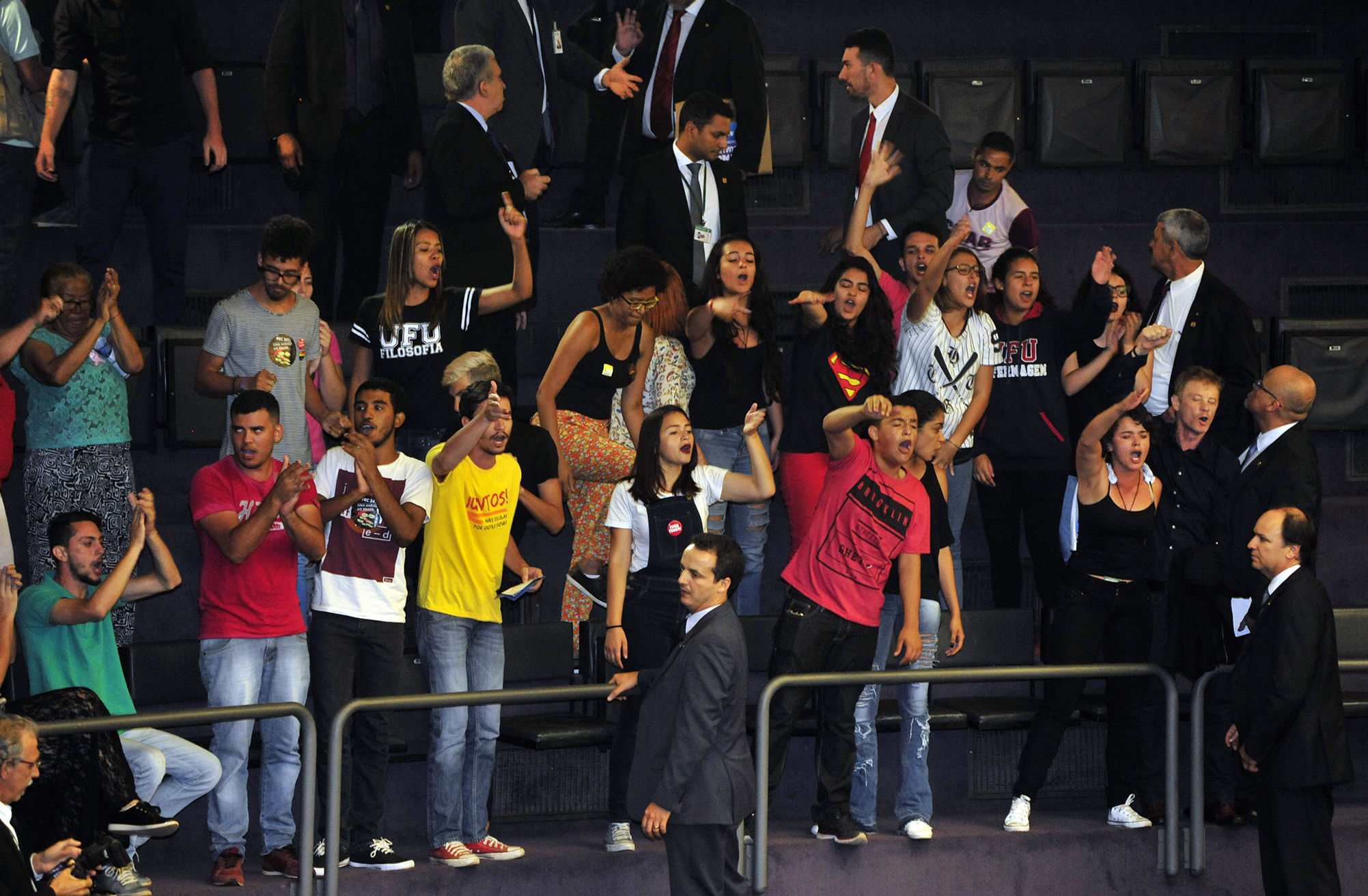 Pouco antes de encerrar a votação, o presidente da Câmara, Rodrigo Maia (DEM-RJ), mandou que a Polícia Legislativa retirasse das galerias cerca de 50 manifestantes que protestavam contra a aprovação da PEC.